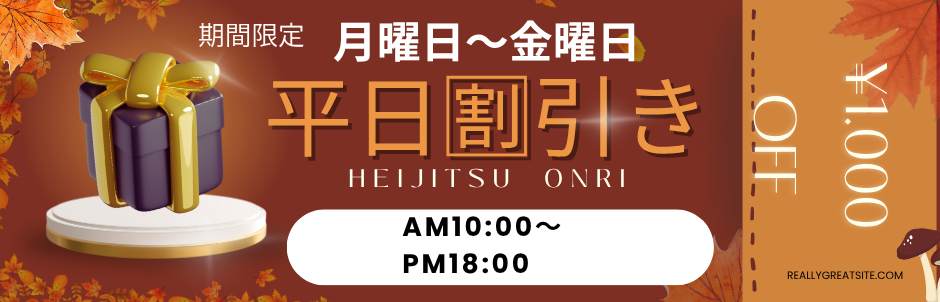 平日60分以上で1000円引きで